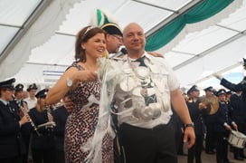 Carsten Sicking hat am Schützenfest Sonntag um 18.35 Uhr nach fünf Stunden und 415 Schuss das Objekt der Begierde von der Stange geschossen. Zu seiner Königin erkor er sich Michaela Tepe. Wir von der 6' ten wünschen euch allen sehr schöne zwei Jahre.